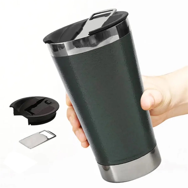 Use the bottle opener at the bottom of the bottle to open your beer and pour your beer into this stainless steel tumbler, so that he always stays cool. This tumbler made from 18/8 stainless steel, features with large capacity of 20oz, powder coated body,