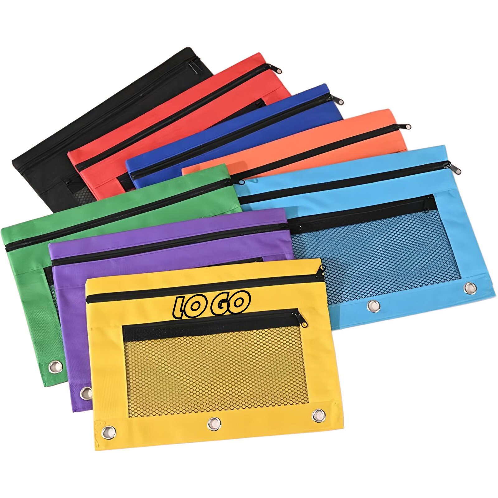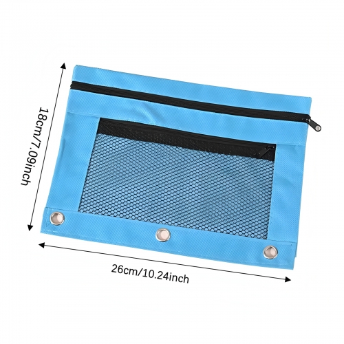 This durable 3-ring pencil pouch fits standard binders, organizing pens and small supplies. Made from woven fabric with secure zipper and clear window, its B5 size offers ample storage. Available in 12 colors with smooth logo area, ideal for school kits, corporate gifts, or event swag. A functional promotional organizer for daily brand visibility.