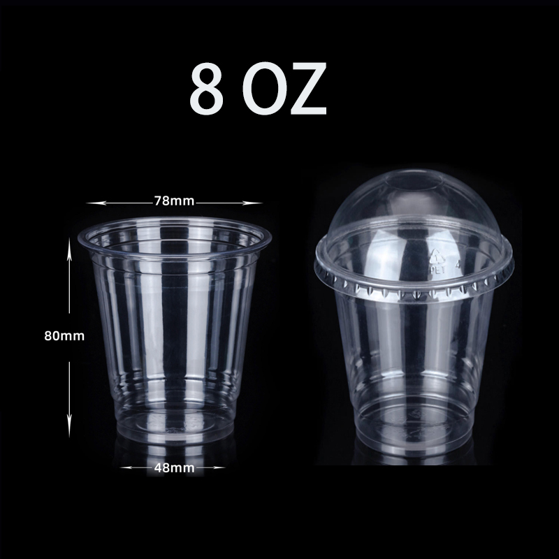 8OZ plastic cup, made from eco-friendly materials and customizable with your logo. Perfect for various food and beverage brands.