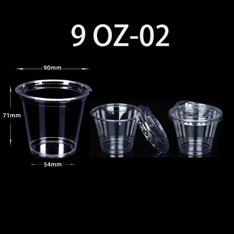 9OZ plastic cup, made from eco-friendly materials and customizable with your logo. Perfect for various food and beverage brands.