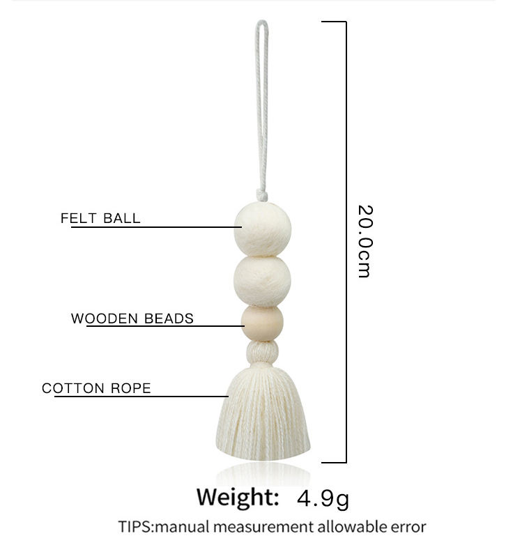 Boho Wool Felt & Wooden Bead Car Aromatherapy Diffuser