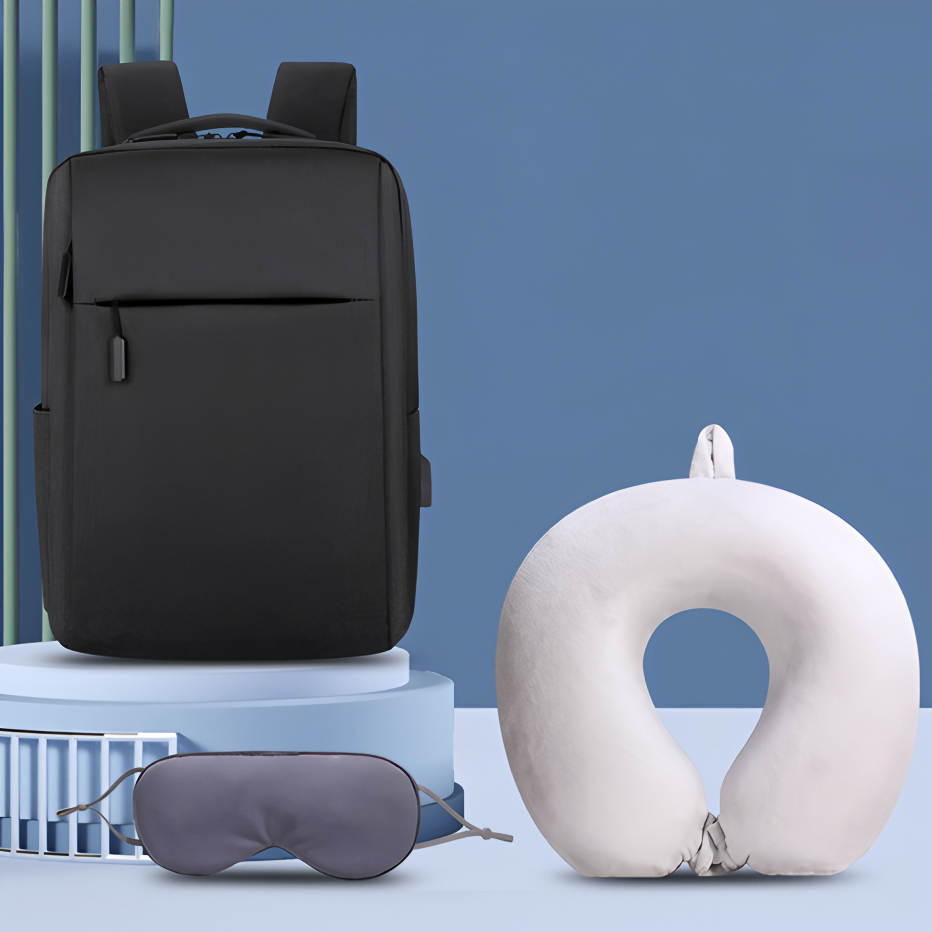 Customizable Backpack Gift Set with Neck Pillow & Eye Mask | Corporate Travel Kit
