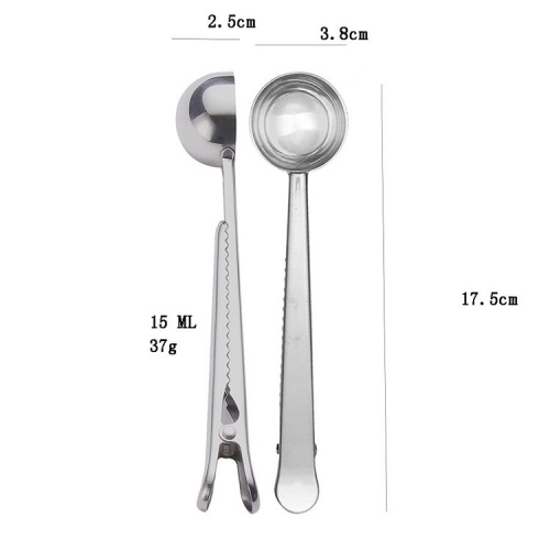 This measuring spoon is made of stainless steel which is safe and non-toxic, strong and durable. It's perfectly combines the clip and coffee spoon together. The unique multi functional design is more convenient for you to use and storage. The handle length is 5.7 inches and the total length is 7 inches, which can reach the bottom of most coffee bags.