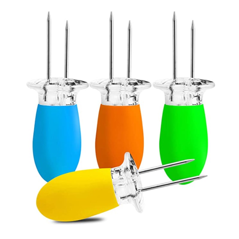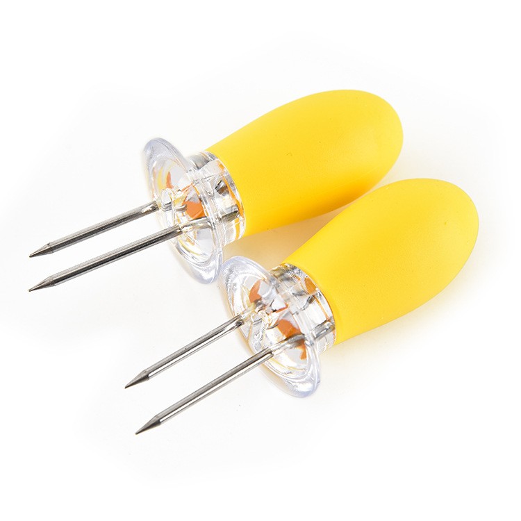 This corn cob fork is made of stainless steel material, environmental-friendly. Lightweight, heat resistant, durable. Make eating hot corn, sausages and meats, easier than ever on the cob. Just insert the prongs into the ends of the cob and enjoy cooking.Very practical and simple to use, and it is also very easy to clean. Perfect for barbecues, picnics, camping, stadium tailgate parties and other outdoor activities.