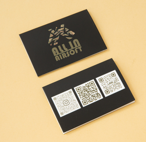 This is a card QR code printing product. The black cards are stiff and have a good texture, offering high visibility. Multiple QR codes are neatly arranged on the back. They can be used for brand promotion, product introduction, or redirecting to different platforms, which is convenient and fast. It is suitable for various event promotions and brand displays, and can effectively encourage users to scan the codes and interact, helping to expand business.