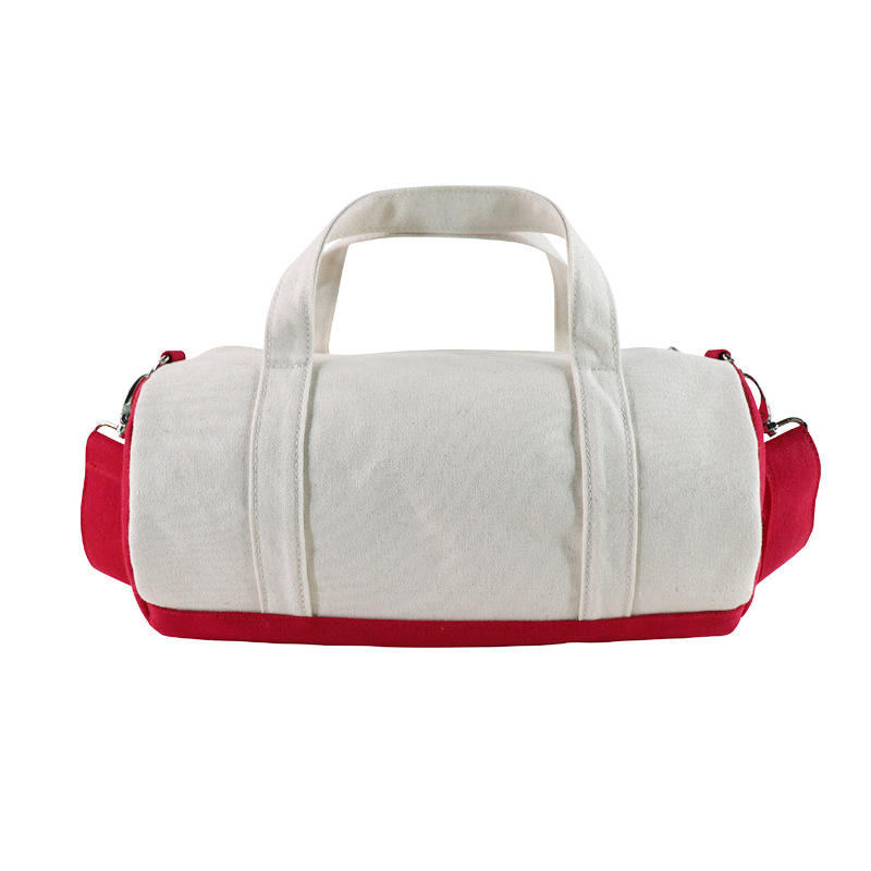 Compact canvas duffel for active lifestyles. Heavy-duty cotton with spacious main compartment and reliable zipper. Reinforced handles & detachable shoulder strap for versatile carry. Flat exterior supports crisp logo printing. Available in classic colors (e.g., natural with red accents). Ideal for promotional gifts, employee incentives, and client giveaways targeting active audiences.