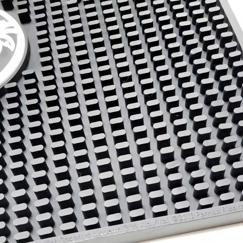 Upgrade your bar with our custom rubber spill mat, designed to catch drips, spills, and ice while protecting your counter. Made from soft, durable drinking rubber, it features a 3D molded logo for a premium raised look. Non-slip bottom keeps the mat securely in place during busy service. Fully customizable with your brand artwork. Factory direct pricing available. Perfect for bars, restaurants, and promotional events. Easy to clean — just rinse and air dry. Elevate your bar branding today.