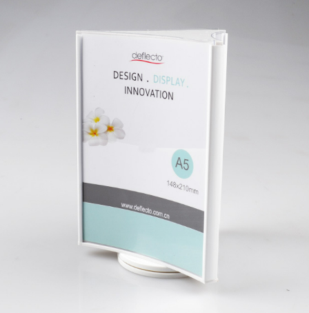 It uses a black border, smooth lines, with a fresh light blue color picture, visual effect is good. Leaflets or posters that fit the A5 size. The bottom is a stable circular base, placed on the table smooth and not easy to topple. Designed to be both beautiful and practical, it can help you effectively present information on your desktop, whether it is a product promotion or an event promotion.