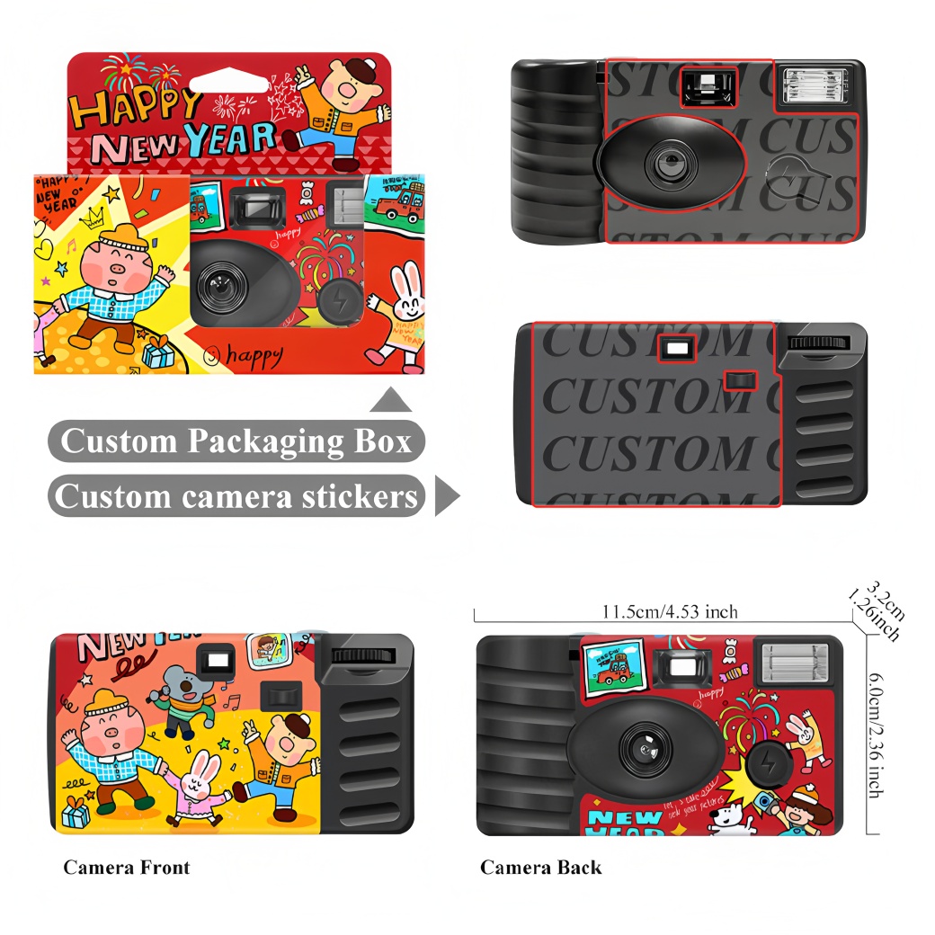 Our Custom Disposable 35mm Film Camera with Flash blends nostalgic charm with playful design—perfect for capturing life’s sweet moments! Preloaded with 35mm film and a built-in flash, it delivers crisp, warm photos right out of the box. Adorned with cute cartoon prints, it also supports custom logo printing, making it ideal for wedding favors, event giveaways, or brand promotions. Lightweight and single-use, it’s hassle-free for travelers, partygoers, and photography lovers alike, turning every snapshot into a tangible, joyful memory.