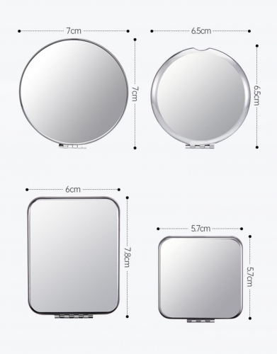 This lightweight plastic makeup mirror is designed for portability and convenience. Equipped with adjustable LED lights, it ensures accurate makeup application by providing optimal lighting conditions. The addition of a magnifying mirror enhances the overall makeup experience. With its simple and elegant appearance, this mirror is suitable for all occasions. It can also be customized with a brand logo or used as a promotional gift.