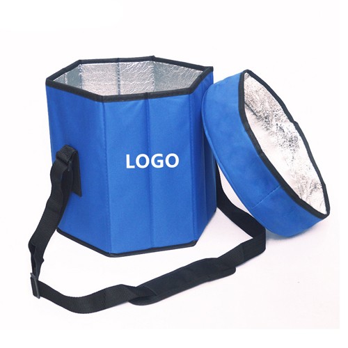 This cooler bag 12" high and has a large area. It can support up to 200 pounds and keeps up to 24 drinks or food cold with its insulated liner. Ultra-portable, the cooler bag folds completely flat to store when not in use.