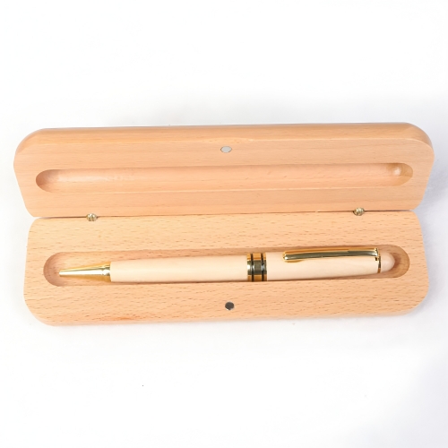 Crafted from natural maple wood with polished gold-toned accents, this retractable ballpoint pen delivers a smooth writing experience and refined aesthetic. The set includes a matching maple storage case, making it ideal for corporate branding, client gifts, or premium promotional sets. Both the pen and case support clean logo imprinting for lasting brand visibility. Durable, lightweight, and eco-friendly in design, it balances daily functionality with sophisticated appeal—a practical yet polished addition to any promotional lineup.