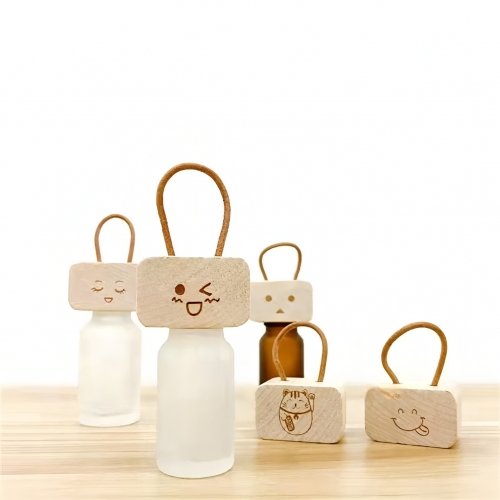 Natural Wood Essential Oil Diffuser Cap - ideal for corporate gifts & promotions. Made from sustainable wood with laser-engraved designs. Fits 10mL bottles; add 2-3 drops for electricity-free fragrance. Includes leatherette loop for hanging. Custom logo available with low MOQ. Durable, lightweight & cost-effective. Perfect for wellness brands and retailers.