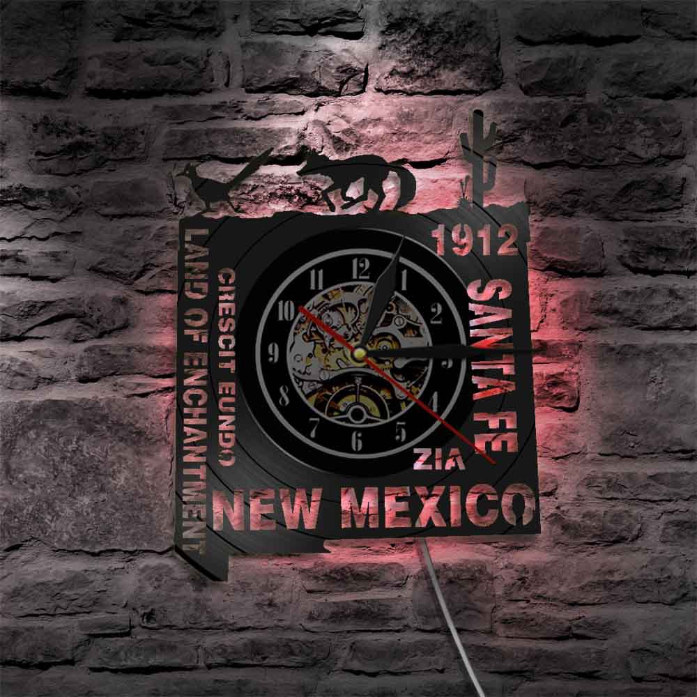 American Home Santa Fe Wine Record wall clock, New Mexico vinyl record wall clock art gift, suitable for decorating living room, bedroom, study, office and other Spaces.