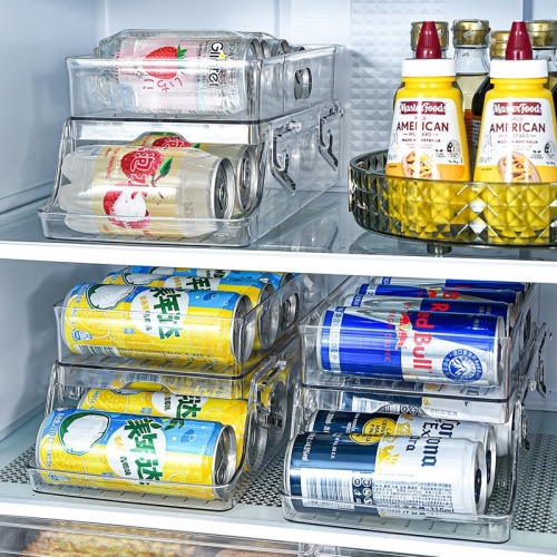 The PET double-walled beverage holderis a convenient and space-saving solution for organizing and storing cola cans in your fridge. Its double rows allow for maximum storage capacity while keeping your drinks easily accessible.