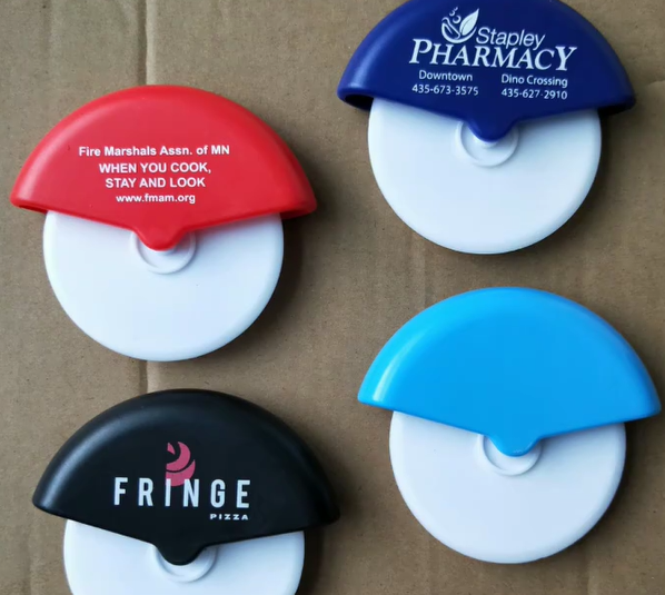 Made from durable, food-grade plastic, this round pizza cutter is designed for effortless slicing of pizzas, flatbreads, or pastries. Its ergonomic handle ensures a comfortable grip, while the sharp, stainless steel blade guarantees smooth, precise cuts every time. A customizable logo can be added to the handle, making it ideal for branding or gifting. Lightweight, easy to clean, and dishwasher-safe, it combines practicality with reliable performance for any kitchen.