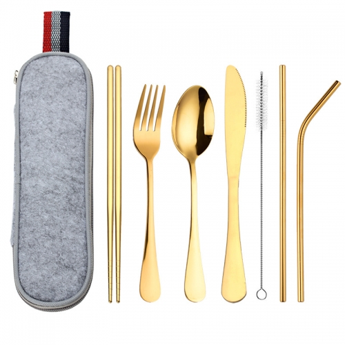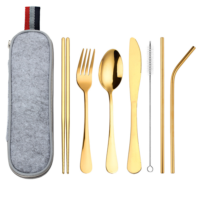 Portable travel cutlery set 304 stainless steel cutlery spoon straw chopsticks