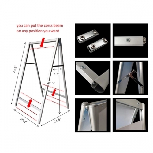 Poster stand made of aluminium alloy. Newest design, silver color Suitable for 5mm panel board Panel size 23.62"x33.46" Portable and space saving Metal lock design, protect your business To expand the role of publicity.