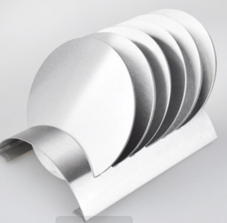 The main body is a round coaster, with a long shelf of the same material. The black appearance of the coaster is simple and atmospheric, the stainless steel material is durable, can effectively heat insulation, protect the desktop from hot drinks or dinner plate damage, and easy to clean, not easy to stain and smell. The strip rack not only facilitates the storage of coasters, saves space, but also adds a sense of design to the whole.