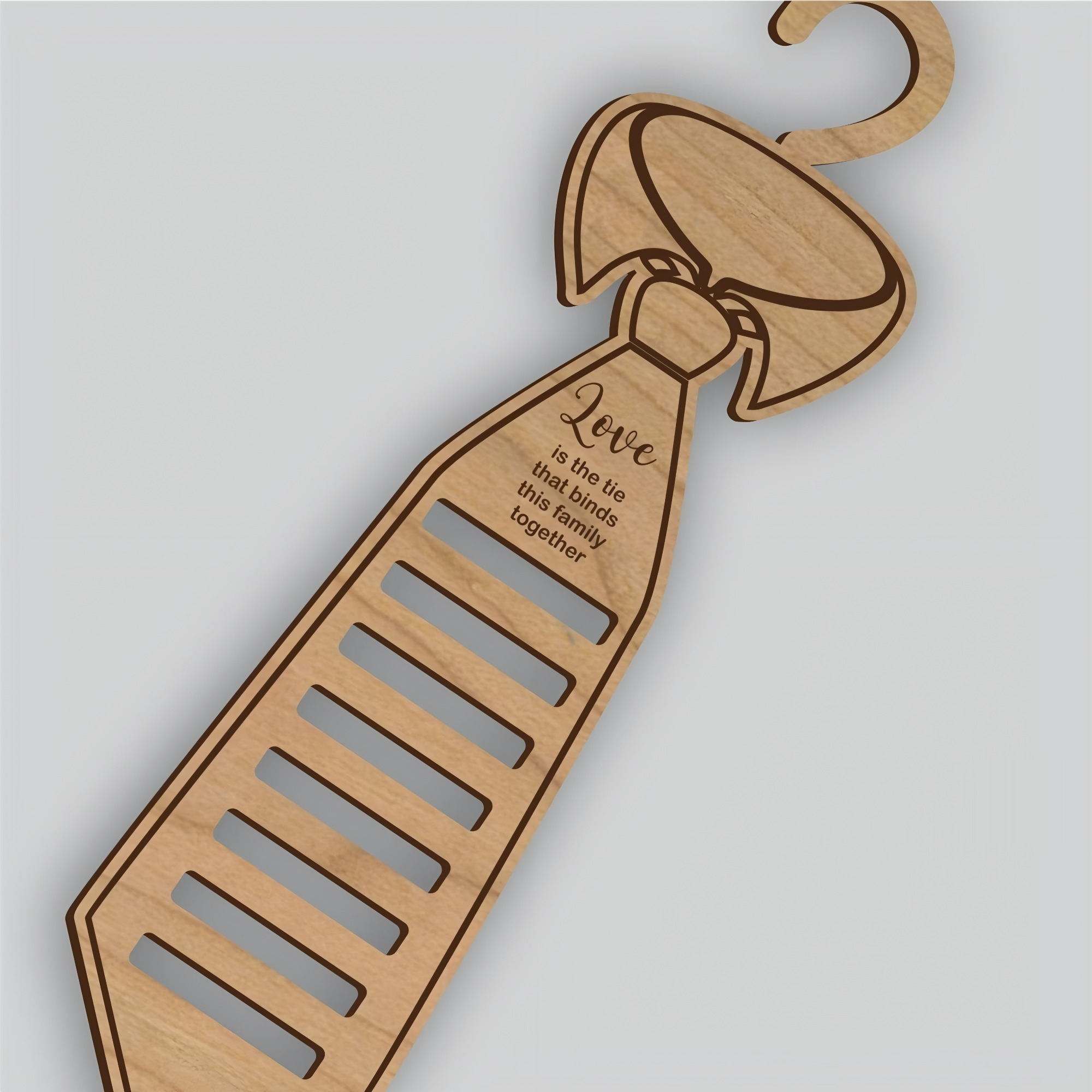 Crafted from natural wood, this space-saving tie rack features 8-10 slotted compartments for neat organization and an integrated hook for standard closet rods. Available in three designs—minimalist, "Best Dad Ever" themed, and a tie-shaped version with family messages—it suits personal use, corporate gifting (with logo/phrase customization), or Father’s Day promotions. Durable, lightweight, and functionally compact (9cm wide, 20-30cm long), it blends practical storage with decorative appeal as a versatile addition to home goods promotional lineups.